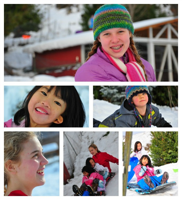 Art and Julie and the kids came from the Yukon. My parents are here. We have a ton of wet snow.... so the kids have been sledding almost constantly. They come in to eat and throw their wet clothes in the dryer and then it's back out on the hill.